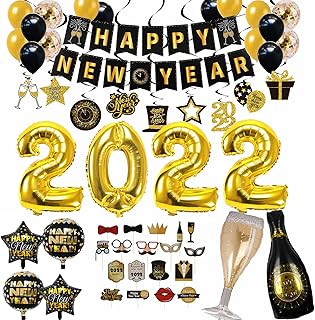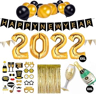 sancuanyi Silvester Deko 2022 Neujahr, Silvester Party Dekoration Set, Happy New Year Banner, 2022 Foil Ballons, Foto Requisiten, Silvester Dekoration Set