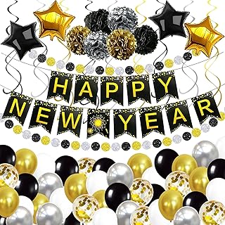 JWTOYZ Silvester Deko 2022, Neujahr Deko 2022, Happy New Year Girlande, Fotorequisiten, Konfetti, Papier Pompoms, Silvesterpartydeko für Silvesterparty