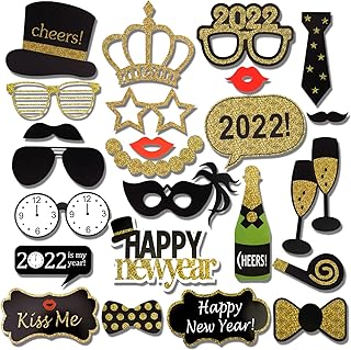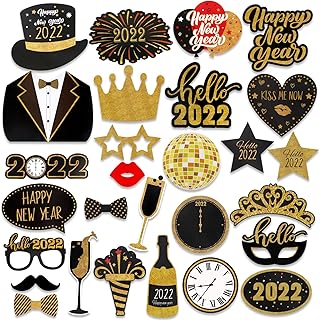 HOWAF 2022 Neujahr Fotorequisiten Fotoaccessoires (28Pcs), Silvester Photo Booth Props Verkleidung Mitbringsel Maske Party Zubehör für Erwachsene Kinder Silvester Deko 2022 Silvester Party Dekoration