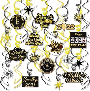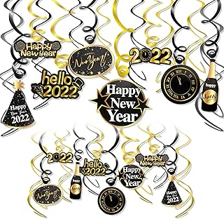 HOWAF NeuJahr 2022 deko Silvester Hängender Spiral Girlanden Schwarz & Gold (30Stück), Frohes neues Jahr Party Dekorationen, Neujahrsdeko, Silvester deko 2022