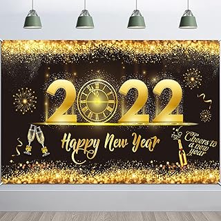 HOWAF Silvester Deko 2022 Dekoration Schwarz Gold, Silvester Party Deko Extra 2022 Neujahrs Banner groß Stoff Schild Poster Frohes neues Jahr Hintergrund Banner Neujahrsdeko Party Lieferunge